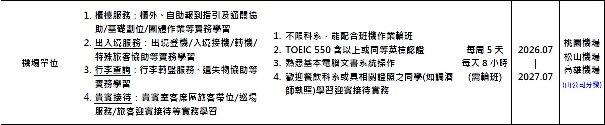 (1) 報名於機場單位實習者,由公司分發。