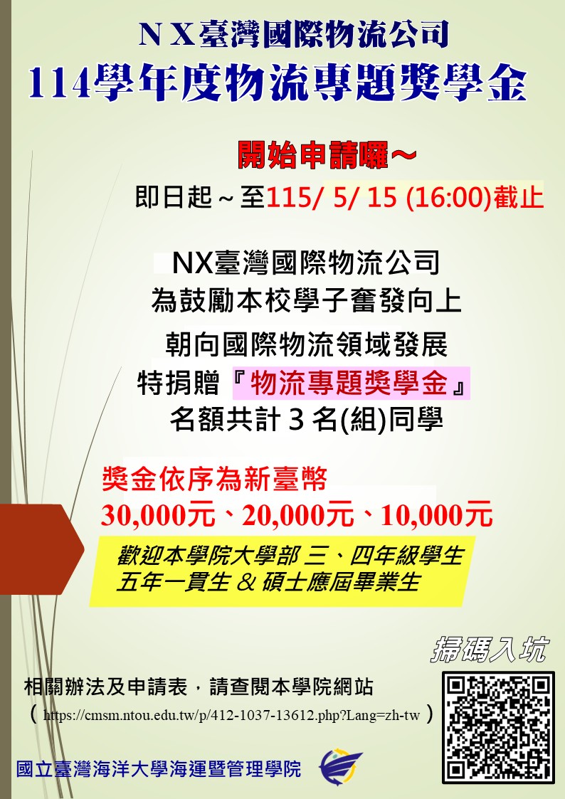 NX臺灣國際物流獎學金實施辦法-114學年度